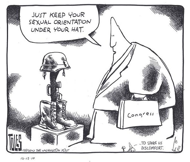Cartoon by Tom Toles about homosexuality in the U.S. Army, The Washington Post, 12 December 2010.