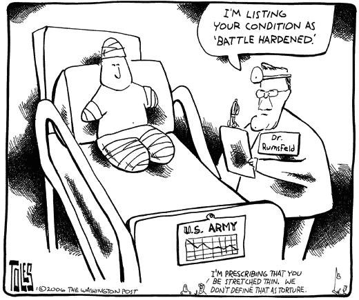 Tom Toles' controversial cartoon about U.S. Secretary of Defense Donald Rumsfeld, 29 January 2006.