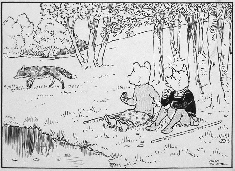 In the 1910s, many newspapers in the United Kingdom published popular children's comics about funny animals. The Daily Mail had Charles Folkard's 'Teddy Tail' (1915-1926), while the Daily Mirror ran Julius Stafford Baker's 'Tiger Tim' (1904-1985) and Bertram Lamb and Austin Bowen Payne's 'Pip, Squeak and Wilfred' (1919-1956). The only paper to lack a strong comic series was The Daily Express. Editor R.D. Blumenfield asked Herbert Tourtel to search for an illustrator. He contacted many, before eventually asking his own wife. It was such an obvious choice that it simply didn't cross his mind. Mary Tourtel already had experience illustrating children's stories about anthropomorphic animals. She was a fine, realistic artist. And she basically already worked for the paper.