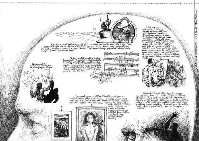 Vladimir Tucapsky was one of the most influential authors of the Czech underground comix scene which emerged in the 1980s. Tucapsky was born in Luhačovice and worked as a book seller, garden laborer and stage technician before becoming a freelance artist. He produced his first short experimental comix in 1983. During this decade he published, in very limited quantities, comics which fall into the alternative field.