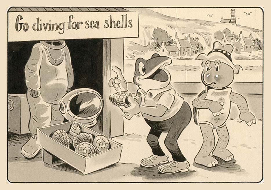 Turnbull was one of the artists drawing the adventures of 'Freddie Frog' in Jack & Jill, when the original artist Peter Woolcock took a break from it in the early 1960s. Other artists involved with the feature were Gordon Hutchings and the Italians Antonio Lupatelli and Sergio Asteriti. In Playhour, Turnbull drew stories based on the TV show about the two pigs 'Pinky & Perky'. He was also one of the artists of Playhour's 'The Merry Tales of Mimi and Marny', another featured originated by Woolcock. Turnbull later appeared in the nursery titles of competitor DC Thomson, such as Bimbo and Magic. He was the artist of the series 'Old McDonald's Farm' (Bimbo, 1964), and one of the artists drawing 'Cuddly and Dudley' (Magic, 1970s). The latter was a spin-off starring the niece and nephew of The Dandy's 'Biffo the Bear', drawn by Dudley D. Watkins.