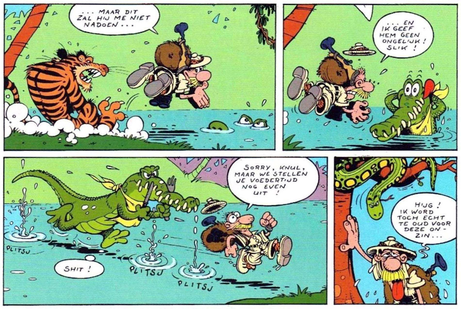 While they were still working on 'Soeperman' episodes, René Uilenbroek and Willem Ritstier developed a new concept, based on the historical adventurer Henry Morton Stanley. After presenting their comic to several magazines, it was finally accepted by the Belgian magazine Suske en Wiske Weekblad. Between 1995 and 2003, Ritstier and Uilenbroek's 'Stanley' feature ran in this magazine. Set in Africa, the series features the incompetent white explorer Stanley and his far more smarter and sarcastic black guide Weekend (a nod to Friday from 'Robinson Crusoe'). In many ways, this comic was an updated version of Ritsier's early 1980s solo comic strip of the same name. Between 2003 and 2009, publisher Boumaar released three books of the series. In addition, the 'Stanley' episodes ran in reprints in the comic news magazine Stripnieuws.