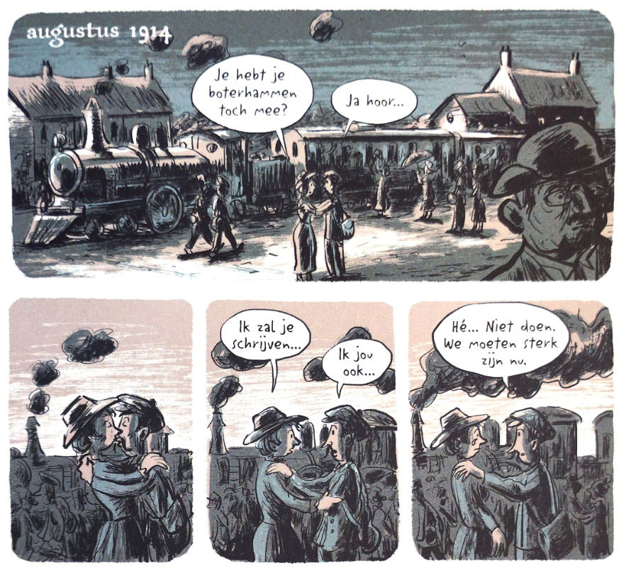 But in Vermassen's opinion, it doesn't really matter how many elements in a story happened in real life or not, as long as it's a strongly-told plot. In the same way, he didn't want to make the First World War the complete focus. After all the commemorations of the Great War in 2014-2018, he felt that audiences would be tired of "yet another bunch of scenes set in the trenches", so 'Soldaat-Hovenier' is a more general human drama about unrequited love, regret and the feeling of being out of control in a chaotic world. When the COVID-19 pandemic (2020-2022) forced almost the entire world into a lockdown, Vermassen not only had more time to work on his comic without distractions, but also could empathize more with Alois, who was struck with influenza during the pandemic of 1918-1920.