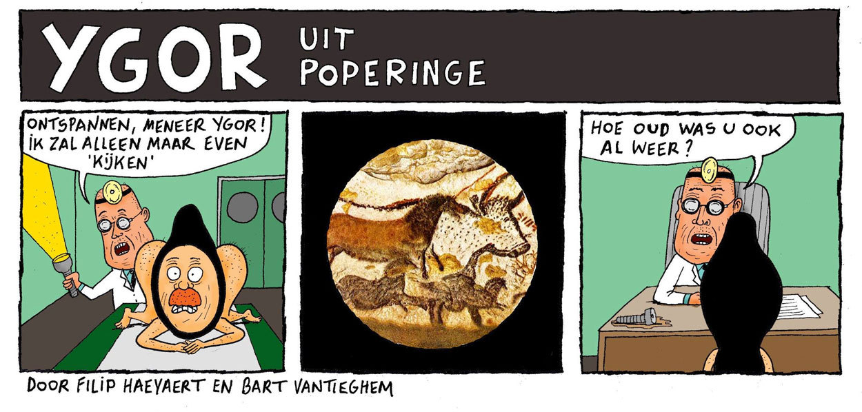 'Ygor uit Poperinge' (1 February 2016). Translation: "Relax, Mr. Ygor! I'm just going to have a 'look'. How old you said you were?".