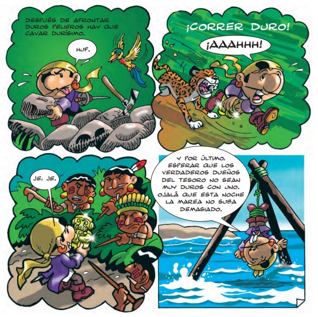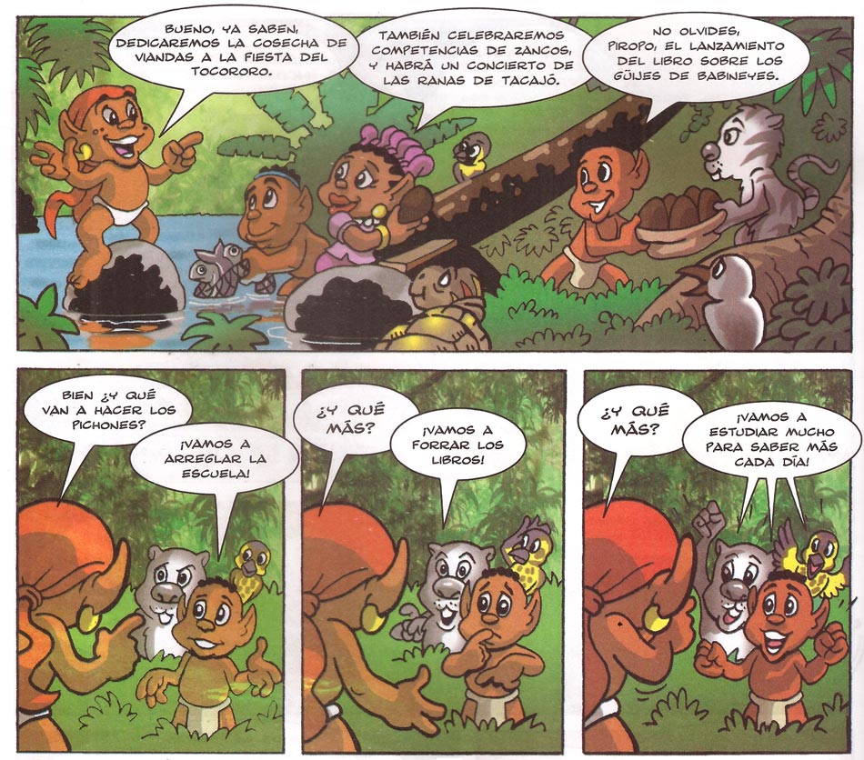 Ángel Velazco Hernández serves as head of Zunzún's artists team, which also features David Yabor, Sonmy and Liosvany García. His other major comic strip for the magazine is about the pirate 'Rascacio, El Filibustero' (also known as 'El Capitán Rascacio'), while he works with scriptwriters like Héctor Quintero and Adela Moro Díaz on the riddle gag strip 'Los Deberitos'. Velazco additionally contributes to the magazine Mar y Pesca, for which he makes short and serial comics strips about naval adventures in the 'Grandes Aventuras en el Mar' section.