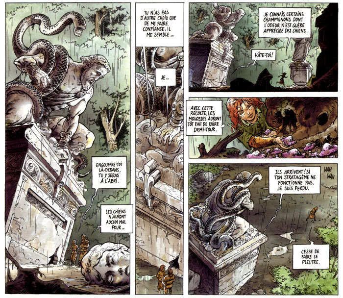 However, the series was canceled after Verhaeghe's sole album, after which the artist continued his collaboration with Tarvel for 'Les Contes de Mortepierre' (two volumes, 2004-2006). This medieval fantasy series was a spin-off about a younger version of the red-headed heroine Mortepierre, title character of a heroic fantasy series created by Brice Tarvel with the artist Mohamed Aouamri (1995-2005).