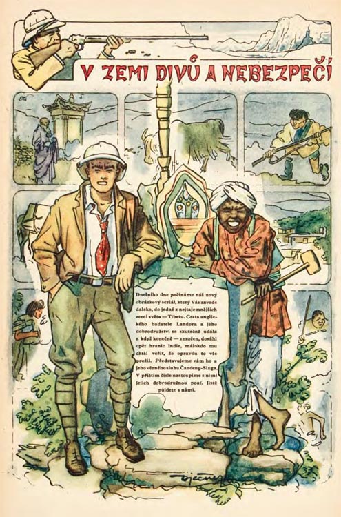 Pavel Vječner was a Czech comic artist affiliated with the scouts magazine Skaut Junák. He was the author of the comic stories 'Tajemství bažin' and 'V zemi divů a nebezpečí' in 1947 and 1948.