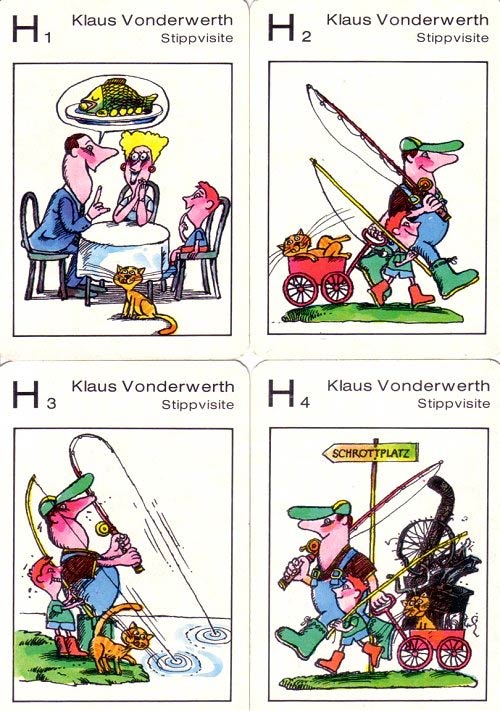 Vonderwerth illustrated album covers for East German musical acts like The Klaus Renft Combo, Frank Schöbel and Die Puhdys, and for records with fairy tale plays and Peter Hacks stories. He illustrated children's books and drew cartoons for the cultural monthly Das Magazin and the satirical magazine Eulenspiegel. An entire generation of children know him from the thirteen album covers he illustrated for the 1980s children's play 'Der Traumzeuberbaum' by Reinhard Lakomy and Monike Ehrhardt. He also contributed a comic strip for the playing cards game 'Die Kinder vom Wolkenplatz' (1988).