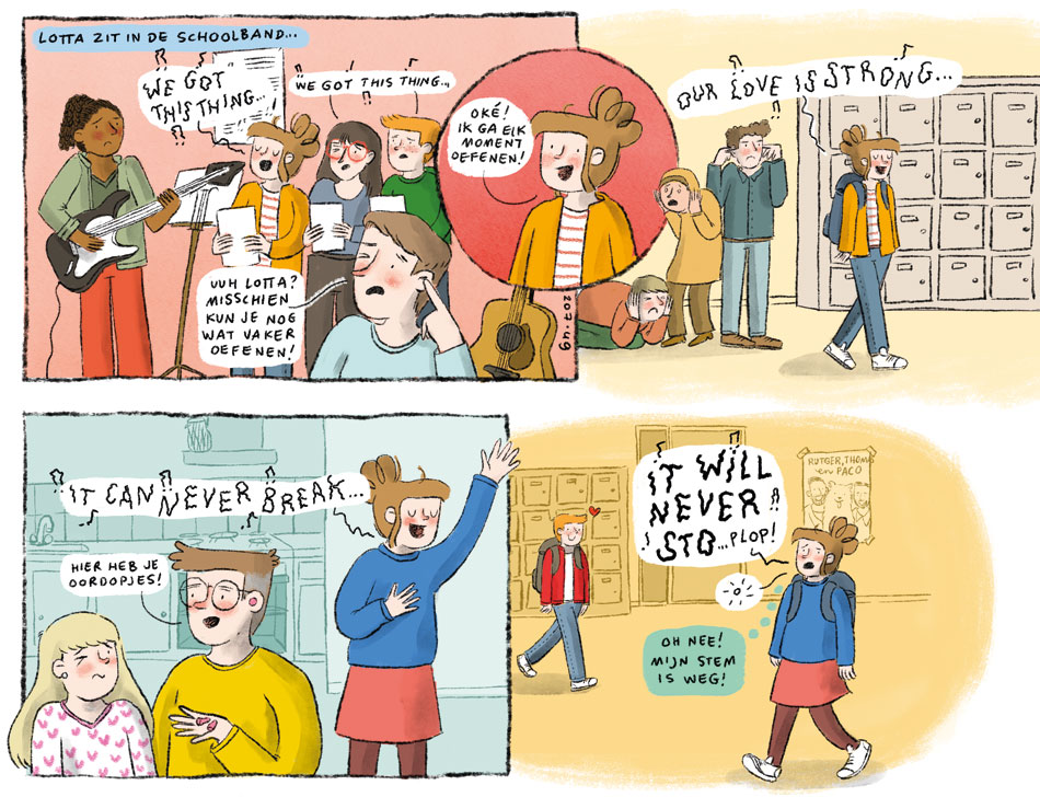 Marloes de Vries is a Dutch freelance illustrator and comic artist, based in Capelle aan den IJssel. She regularly posts autobiographical comic strips on her popular social media accounts, and provides illustrations and cartoons for books and magazines such as Flow and Flair. Since late 2018, she has made the weekly gag strip 'Lotta' for girls' magazine Tina.