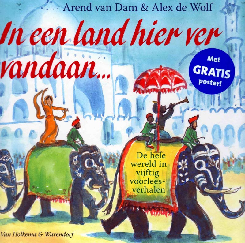 Cover illustration for Arend van Dam's educational book 'In een land hier ver vandaan...' (Van Holkema & Warendorf, 2008).