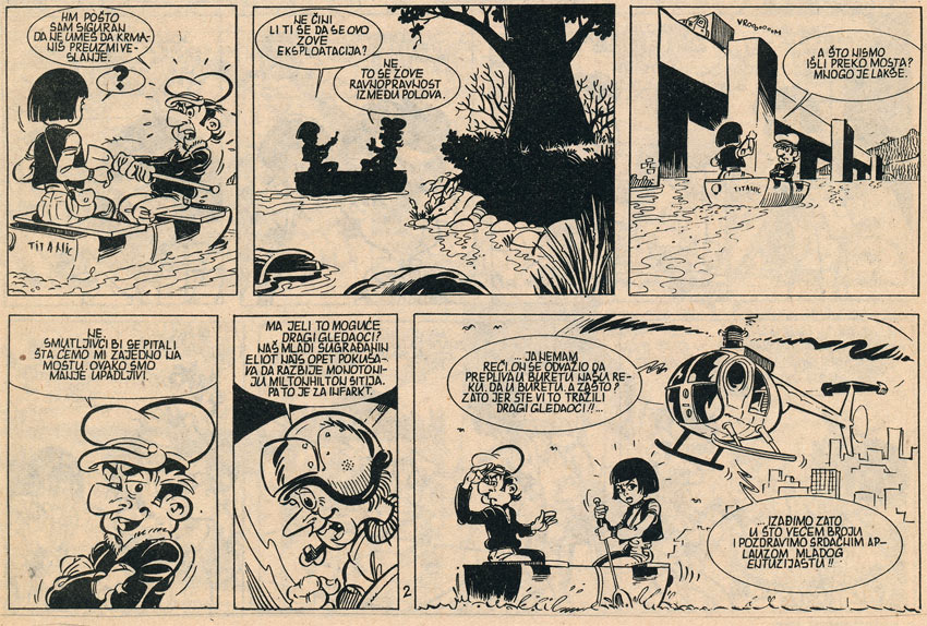 Milorad Žarić is an illustrator and cartoonist from Gornji Milanovac, in central Serbia. He graduated in Graphic Design from the Central High School in Belgrade. Zaric is an artist for the children's paper Decje Novinje, and for educational material for children. He collaborated regularly with scriptwriter Dragan Peric. Besides his work for Decje Novinje, Zaric has also worked for Dnevnik, Politikin Zabavnik and Finesa. His best-known comic strip is 'Šušumige', published in Eks Almanah.
