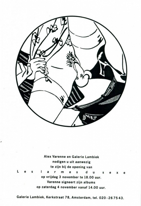 The artwork exhibited in Galerie Lambiek was a selection from his books; Les larmes du sexe, Erma Jaguar, Carre noir, Warschau, Corps a corps and Erotic opera. He also made some special pastel drawings of nudes for the exhibion.