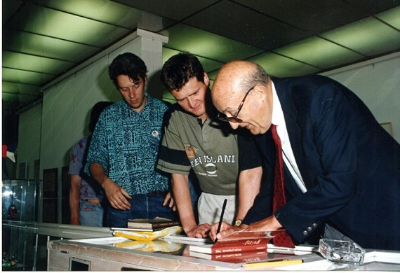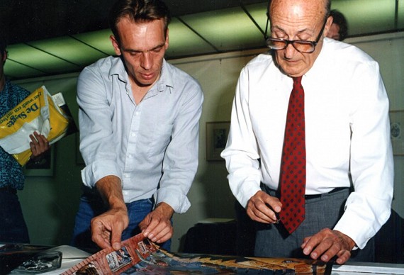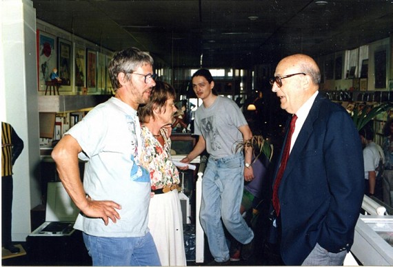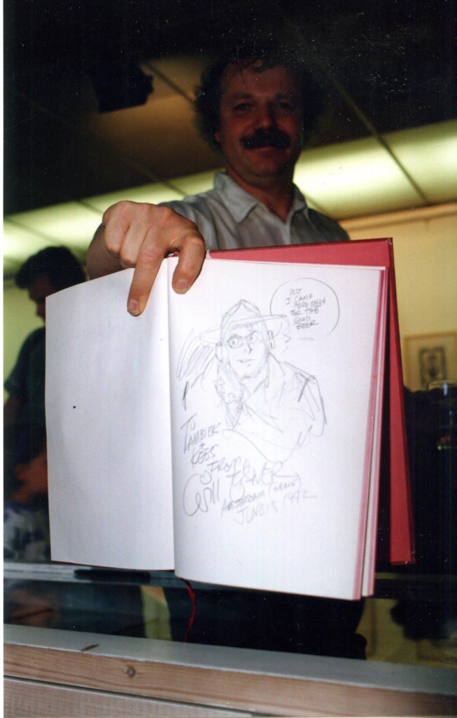 Dit was niet het eerste bezoek dat Eisner aan Lambiek bracht. In 1984 signeerde hij hier zijn boek 'A Contract With God' dat in 1983 door Éditions Lambiek in het Yiddish was vertaald.