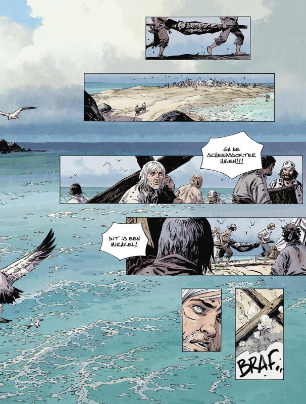 1629. Na een zeereis van een aantal maanden vergaat de Batavia bij de eilanden van Houtman Abrolhos. Meer dan tweehonderd schipbreukelingen proberen te overleven op een onbewoond eiland. Aan het hoofd van dit zootje ongeregeld, veelal uit de achterbuurten van Amsterdam, staat Jeronimus Cornelisz. Samen met zijn getrouwen broedt hij op een afgrijselijk plan: hij wil alle overlevenden afslachten om er dan vandoor te gaan met de rijkdommen uit de Batavia, die veilig aan land zijn gebracht. Door de moordpale rtijen en het terreurbewind van Jeronimus verandert het eiland in de hel op aarde. Alleen Lucretia Jans en een handvol overlevenden, onder leiding van Hayes, verzetten zich tegen een van de ergste psychopaten uit de geschiedenis. En zo kleurt het eiland stilaan rood.