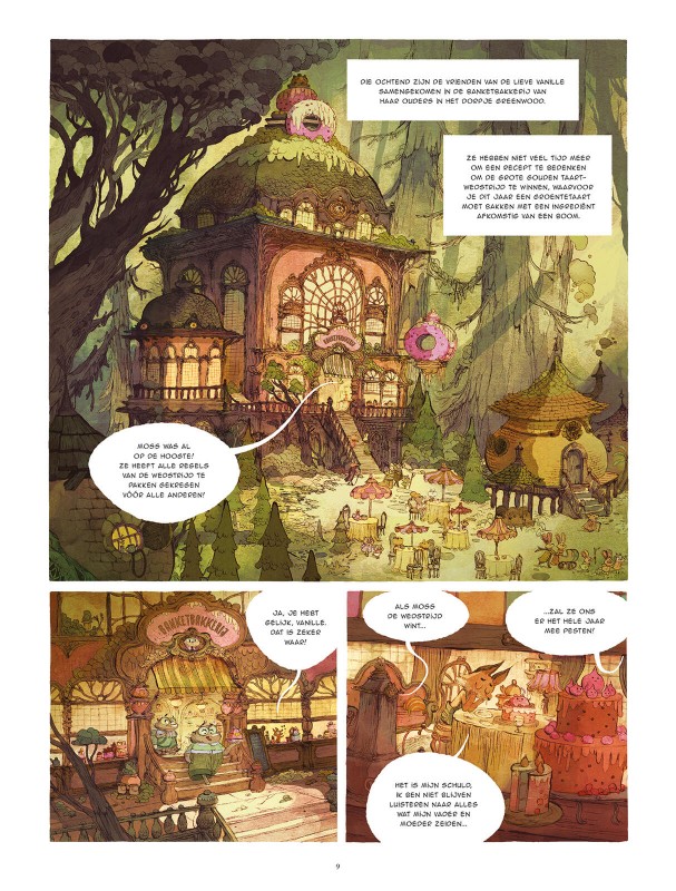 In de hoop de prestigieuze Gouden Taart Beker te winnen, heeft de Zaterdagclub besloten mee te doen aan de grote bakwedstrijd van het dorp. De taart moet bestaan uit groente en een ingrediënt dat van een boom komt. Het aftellen is begonnen: ze hebben 48 uur om een recept te bedenken en de ingrediënten samen te voegen! Hun grootste concurrent is Moss, de ondeugende kikker... Dan krijgt Vanille een geniale ingeving en ze deelt haar receptidee met de rest van de Zaterdagclub. Met zo’n taart zouden ze weleens kunnen winnen! Maar er liggen wel veel hobbels op de weg naar de overwinning...