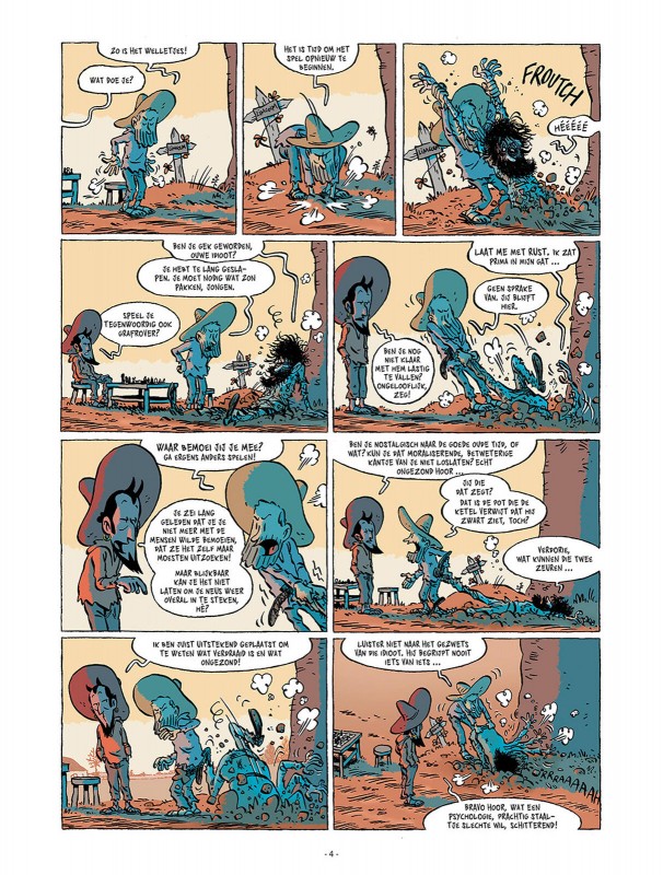 Na maanden comfortabel wegrotten in zijn zelfgegraven gat — het gras staat er alweer netjes bij — wordt Lincoln brutaal terug tot leven geroepen door God, die blijkbaar geen betere hobby heeft gevonden. Nog voor onze cowboy “laat me gerust” kan zeggen, hangt hij alweer rond in Le Havre, waar hij bevriend geraakt met Medoro, een hyperactief zuiders tiepje. Voor Lincoln het goed en wel beseft, zit hij op een schip richting Amerika, tussen arbeiders, oproerkraaiers en andere onruststokers. Eenmaal in New York belandt hij bij een groep anarchisten, die zo georganiseerd is dat zelfs een kamerplant betere overlevingskansen heeft. En zoals altijd loopt niets zoals gepland en Lincoln mag alweer iedereen uit de ellende slaan, inclusief zichzelf. Maar ergens tussen de vuistslagen, explosies en revolutionaire discussies door, ontdekt hij dat er misschien tóch plekken bestaan waar een man in vrede kan leven. Of op z’n minst kan proberen niemand neer te meppen.