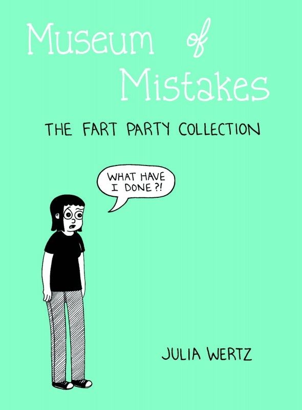 In 2004, Julia Wertz began a series of funny, irreverent autobiographical comics she called "The Fart Party." After posting these comics online at fartparty.org to acclaim and controversy. She eventually started collecting these comics as self-published minis which found their way to Atomic Books in Baltimore who thought they ought to be collected into a proper book so as to garner Julia more laughs and hate mail. As these things go, the first volume was so successful, there was a second volume. Both are out of print, but Museum of Mistakes collects them into one book, plus numerous pages of Julia's early comic work, unpublished and/or previously uncollected comics, short stories, illustrations, process pages, hate mail, sketchbook pages, tear stains, and more.