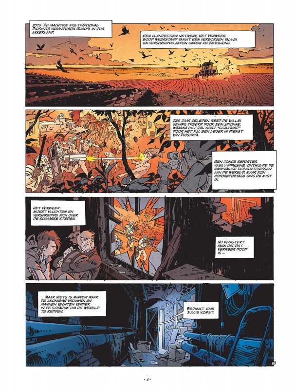 Winter 2075. Zes jaar zijn verstreken sinds de evacuatie van de Vallei van het Verweer. De clandestiene groep lijkt ontbonden, maar enkelen van haar leden strijden verder. Voor Agnes en Adam is het moment aangebroken om terug te keren naar het Verweer, dat zich nu richt op het voorkomen van de ontwikkeling van de P.O.P.1, een nieuwe transgene plant ontworpen door Diosynta om haar monopolie te versterken. Met hulp van de meedogenloze Ellen vertrekt Adam op missie naar de Noordpool om het laboratorium, waar de P.O.P.1 wordt ontwikkeld, te vernietigen. Met dit derde deel van Augustin Lebon raakt het verhaal in een nieuwe stroomversnelling. Een zee van intense emoties en grafische parels om te ontdekken... De start van een tweede cyclus die net zo veelbelovend is als de vorige.